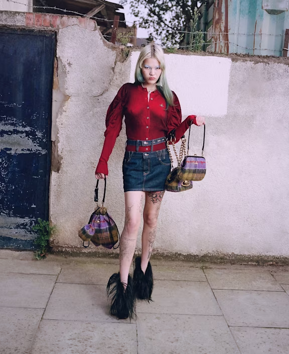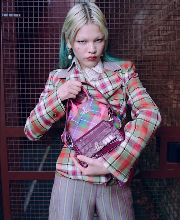 Imagine a gloomy London backdrop, the sky heavy with cloud, the streets slick with rain, and the air thick with that signature British chill. But amid the dreary grey, there’s a burst of colour and tartan defiance: Vivienne Westwood bags, unapologetically bold, standing proudly against the shadows.