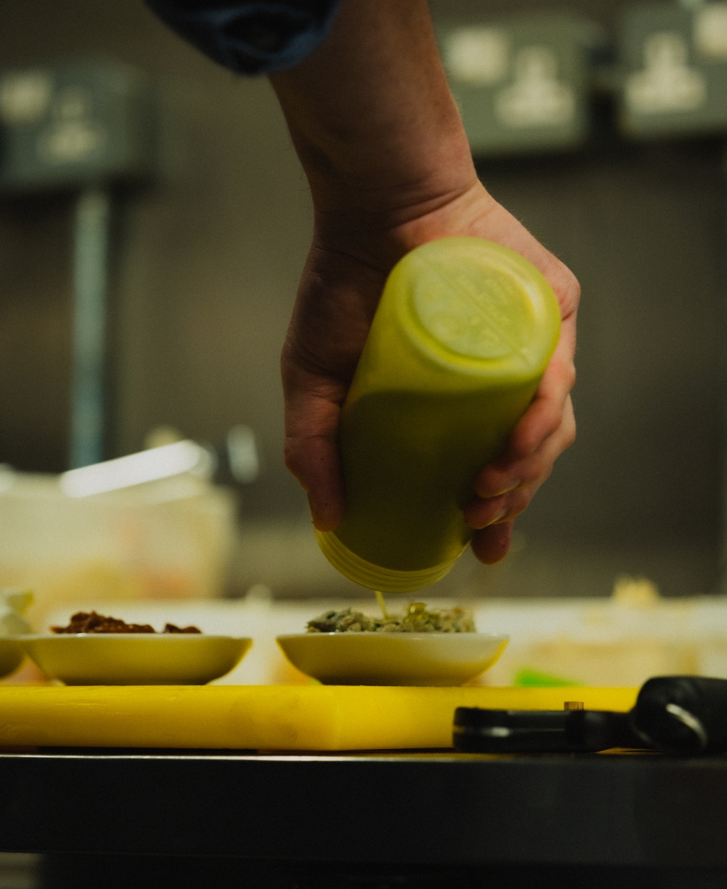 In the kitchen, Oded moves with quiet precision. The sound of knives, the sizzle of oil, and the cadence of a busy service create a kind of music in themselves. “Do you start service with silence or with sound?” he asks thoughtfully. John listens and relates, reflecting on how rhythm shapes her creative process in the studio. For her, both cooking and making music depend on intuition, timing, and an understanding of when to hold back and when to push forward.
