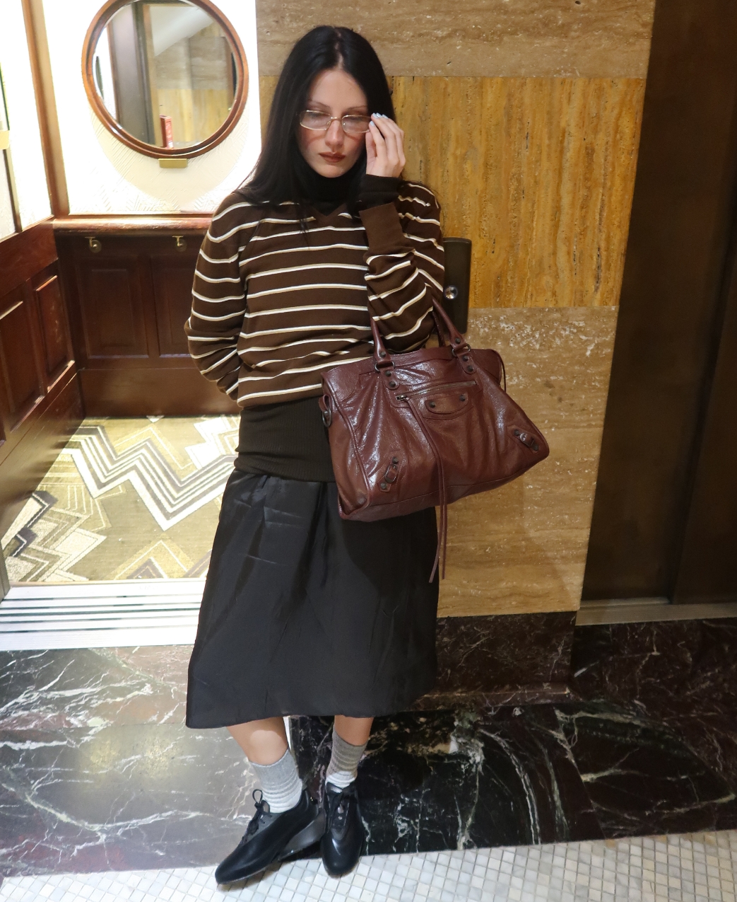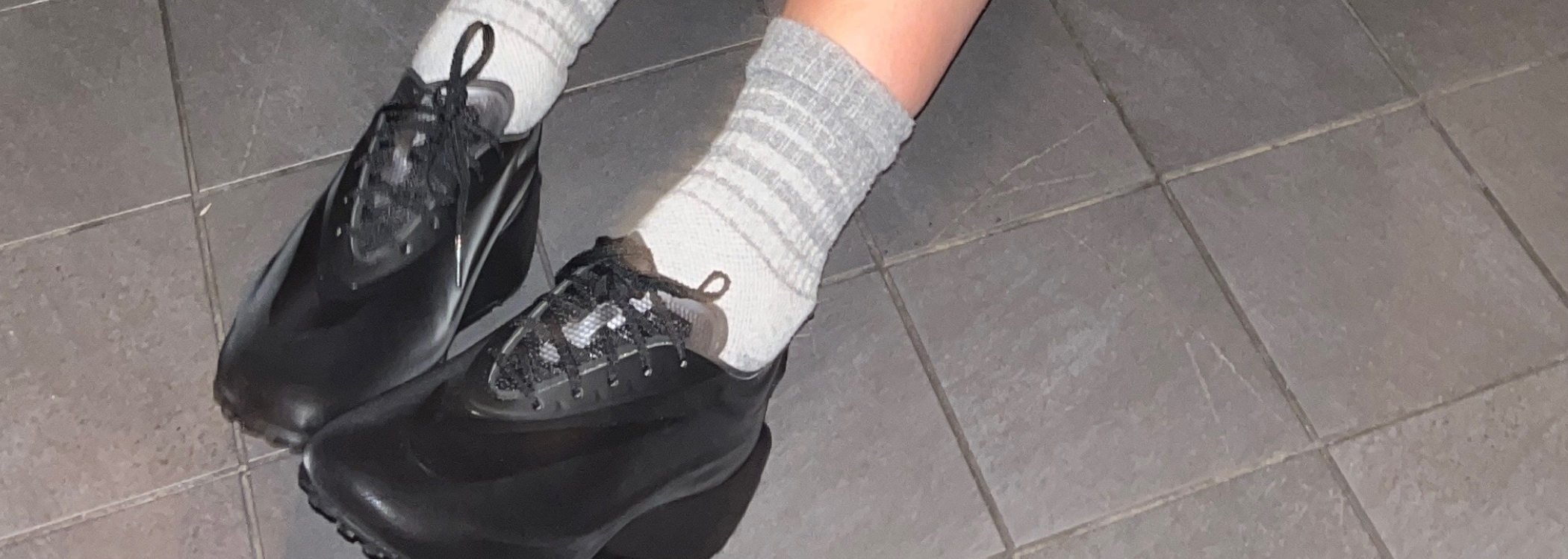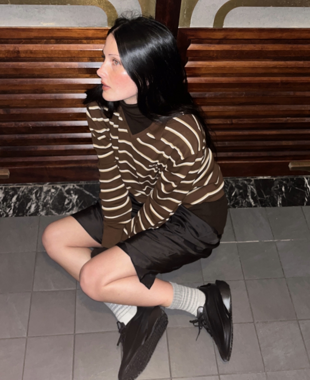 Not defined by one approach to styling, the Noir’s intersectional nature is explored by Soap’s wearing of them throughout her day. By day, she utilises the dynamism of the model to lean into its sportswear heritage, but by night, she highlights the style’s ability to complement an image of maturity. The fluency between these worlds is where the Noir excels.