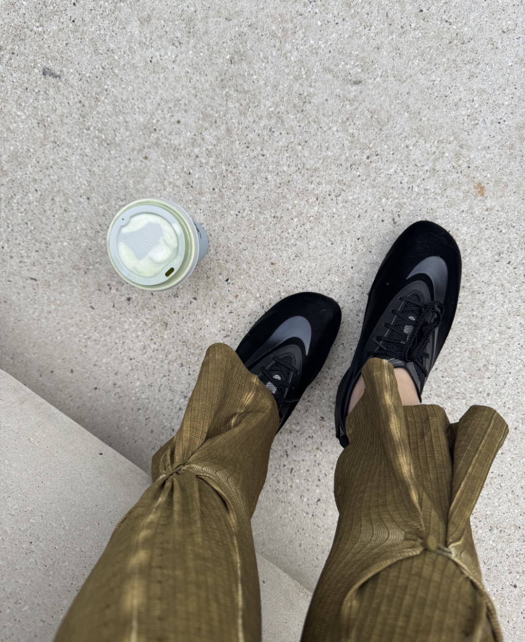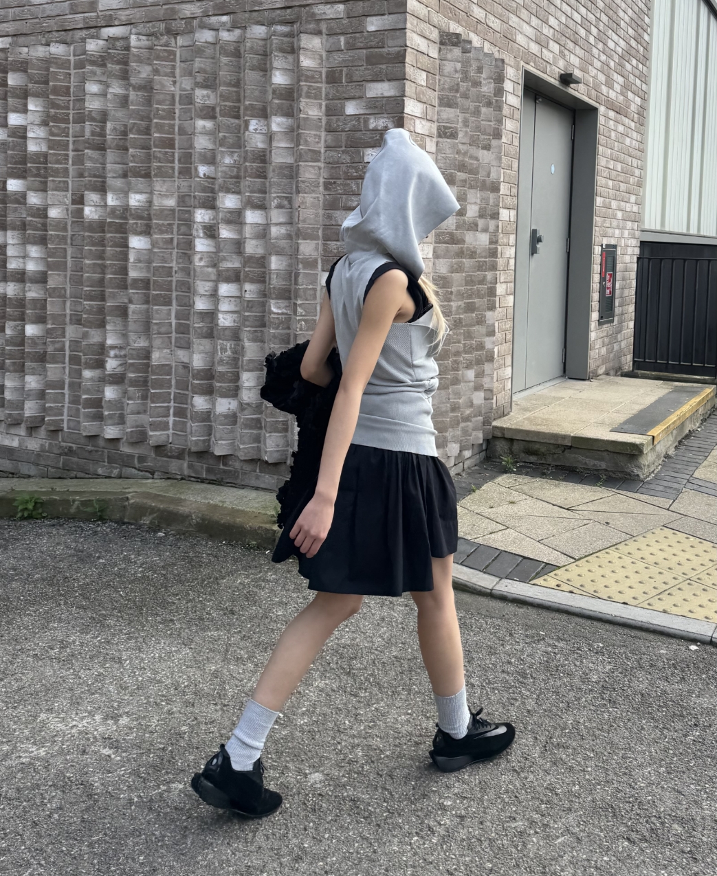 As Effy’s compliments the Noir by pairing them with a look from the Nike KNWLS collection, a sense of effortlessness comes through. Here, a curated vision into the future of feminine styling can be seen. The curvature exudes softness, and with their effortlessly sleek design, they elevate this view of a grounded world with an invitation to innovation. Even when taken on a stroll in the streets– paired with a Miu Miu skirt and Marie Lueder hooded top, a classic feminine silhouette is revitalised.